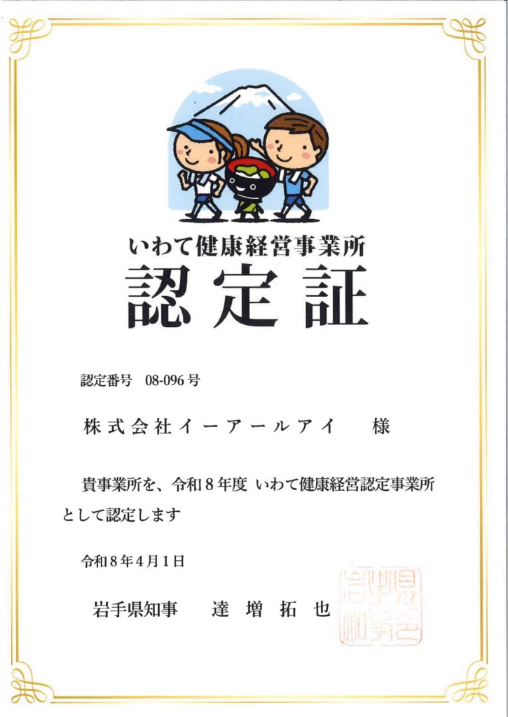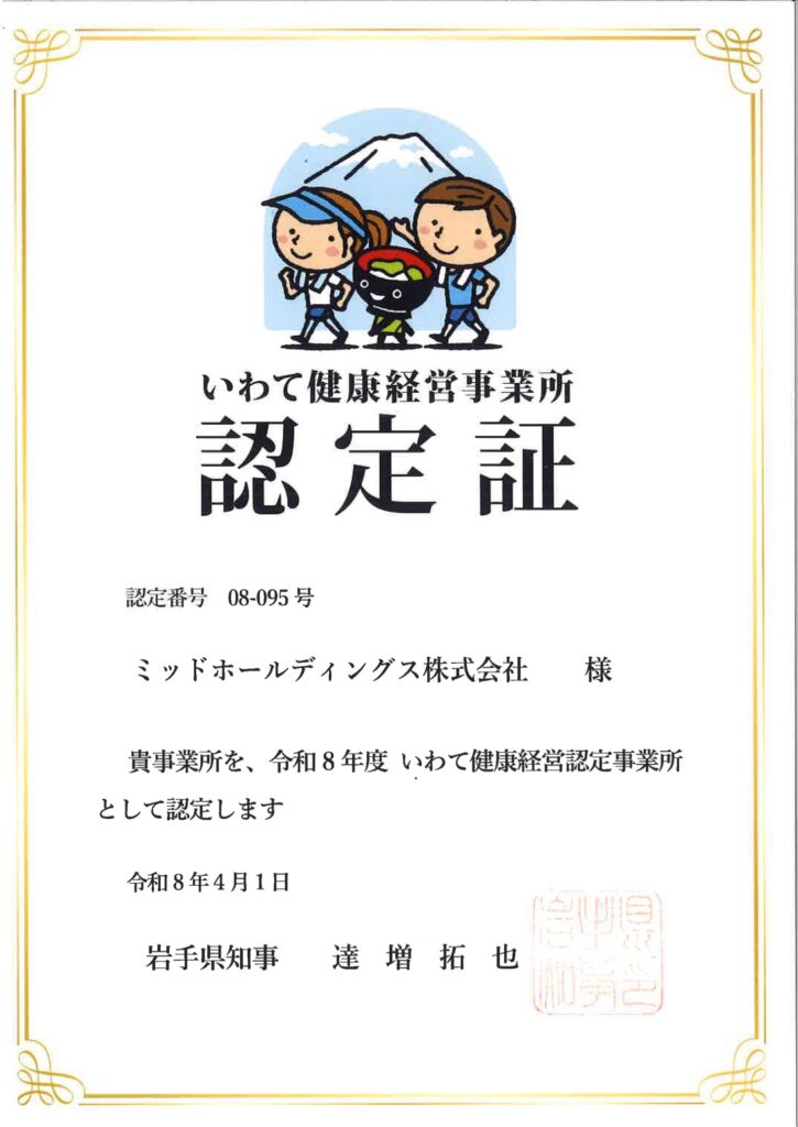 岩手県盛岡市に拠点を置くミッドホールディングスグループの3社(ミッドホールディングス株式会社、株式会社イーアールアイ、株式会社ムセンコネクト)は、健康経営に積極的に取り組む事業者として「いわて健康経営事業所」に認定されました。
