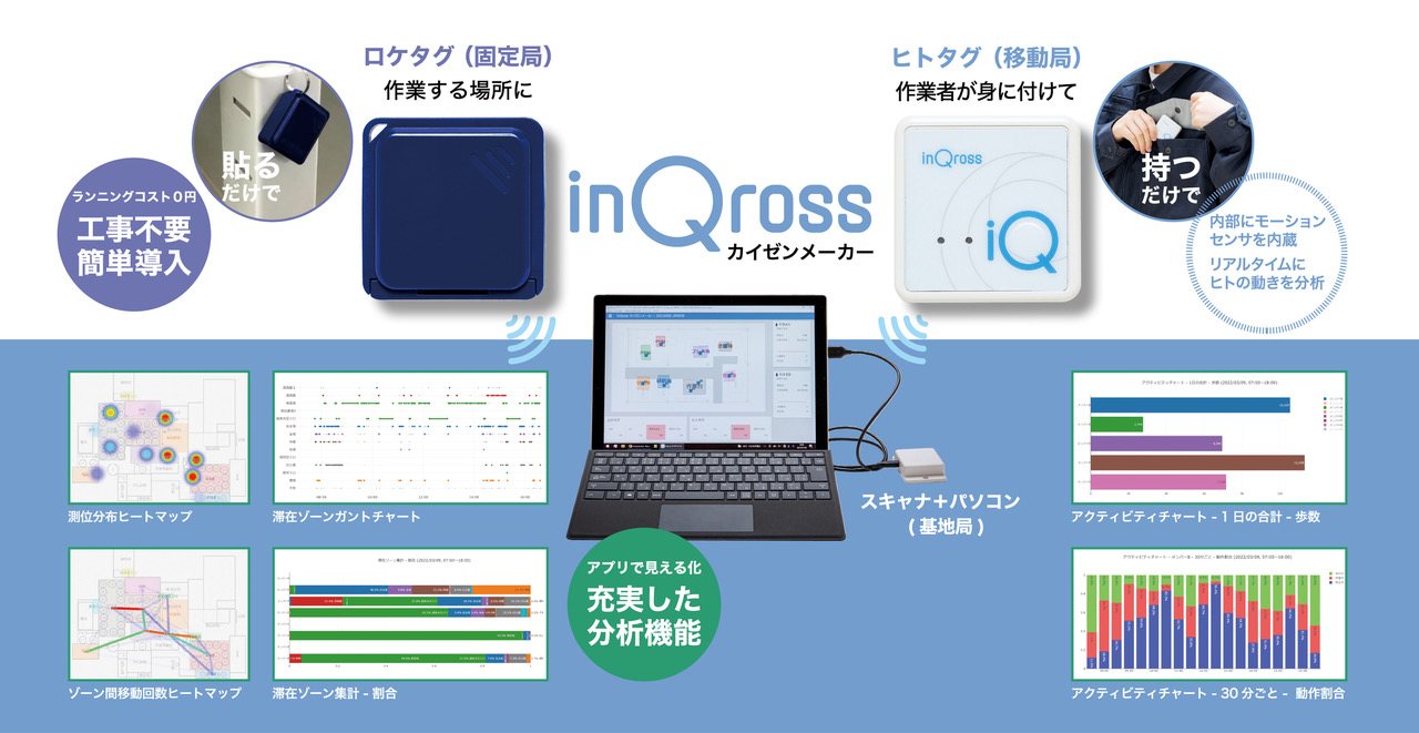 JIET社が展開する『TimePrism』は、2009年のリリース以降、国内外合わせて1,500社・3,000ライセンス以上の導入実績を持ち、動画による作業分析・改善ツールの国内スタンダードとして高いシェアを確立しています。一方、ミッドHDグループのムセンコネクト社が提供する『InQross(インクロス)カイゼンメーカー』は、「ヒト」の位置や動作を「見える化」する分析ツールとして、本格販売開始からわずか3年ですでに50社(延べ75件)を超える現場に導入されており、これら両製品は、IE分野において有効なツールとして広く認知されています。