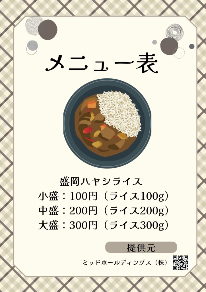 ミッドホールディングスグループが取り組んでいる「未来創造プロジェクト」の中で、「学生のみなさんに美味しいハヤシライスを格安で提供できないだろうか?」というアイデアが浮かび、それがキッカケとなって始まったのが『盛岡ハヤシライス』です。だから採算度外視の価格設定となっています。