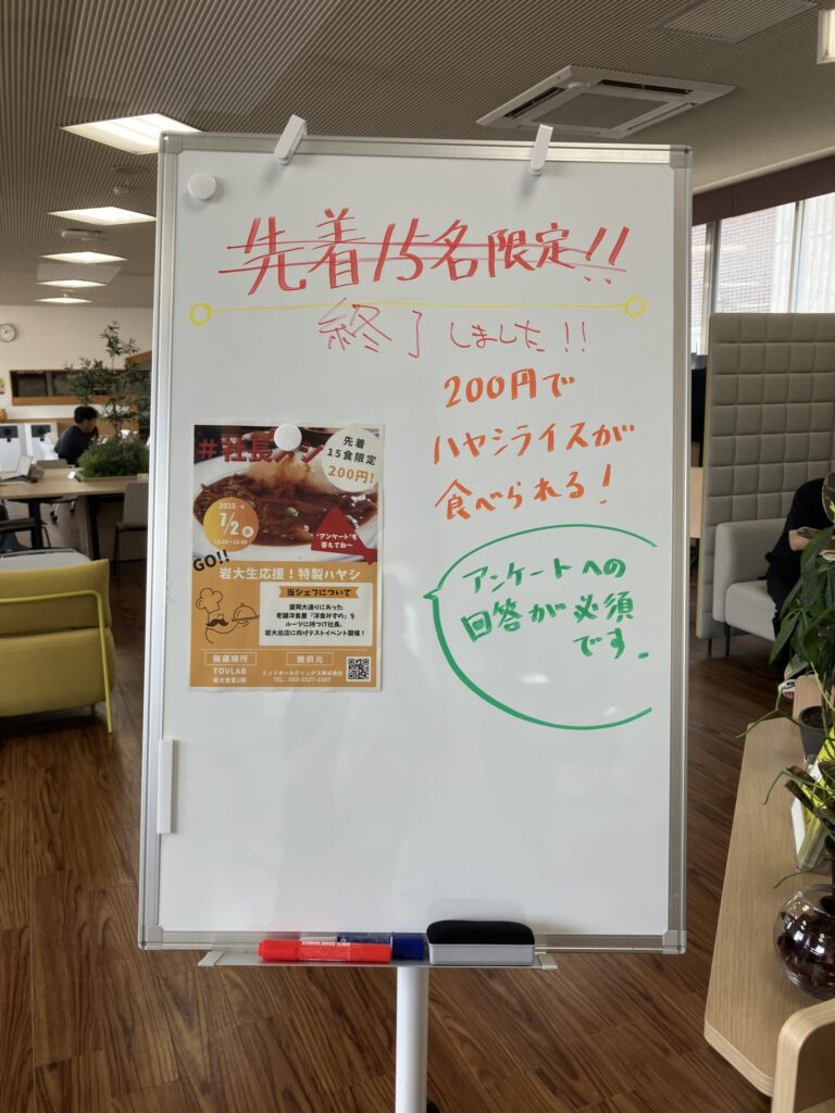 今年7月、岩手大学TOVLAB内で限定15食のテスト販売を行った際には、開始5分で完売し、学生のみなさんにとても喜んでいただけました。