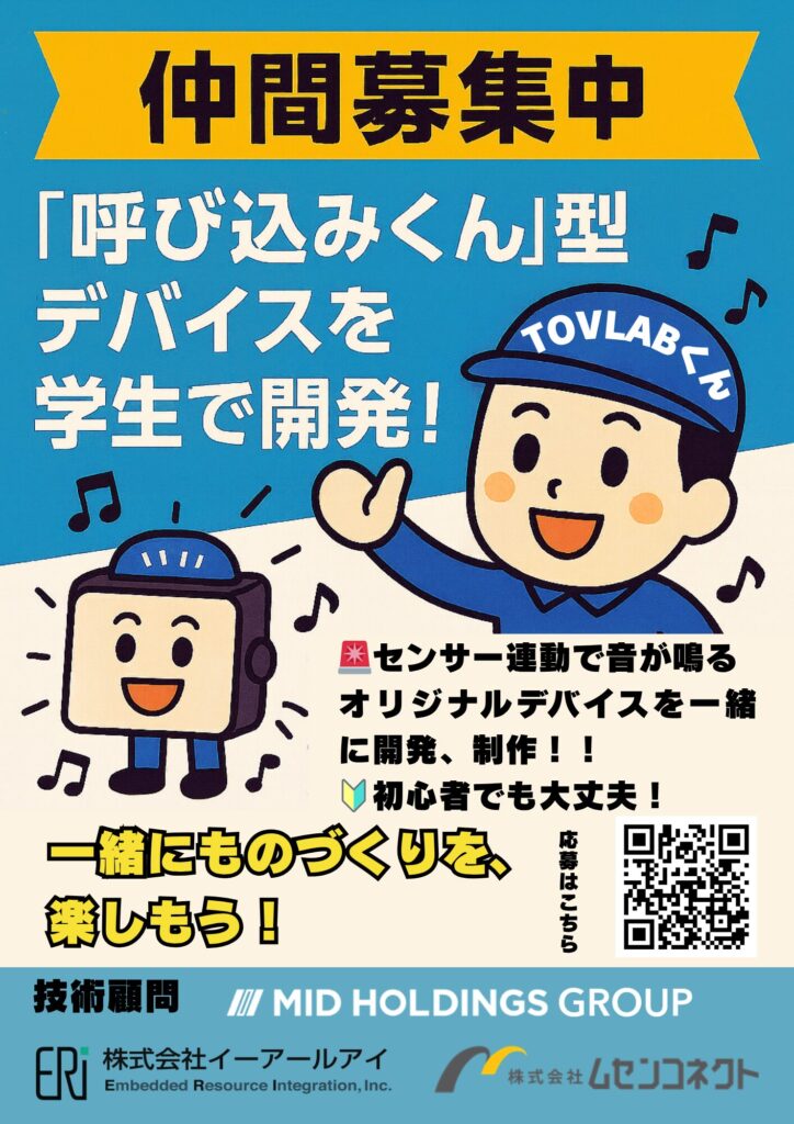 【仲間募集中】岩手大学TOVLABと「体験型ものづくりプロジェクト」を共催しますミッドホールディングスグループの3社(ミッドホールディングス、イーアールアイ、ムセンコネクト)は、岩手大学「イーハトーヴ協創ラボTOVLAB」と「体験型ものづくりプ…