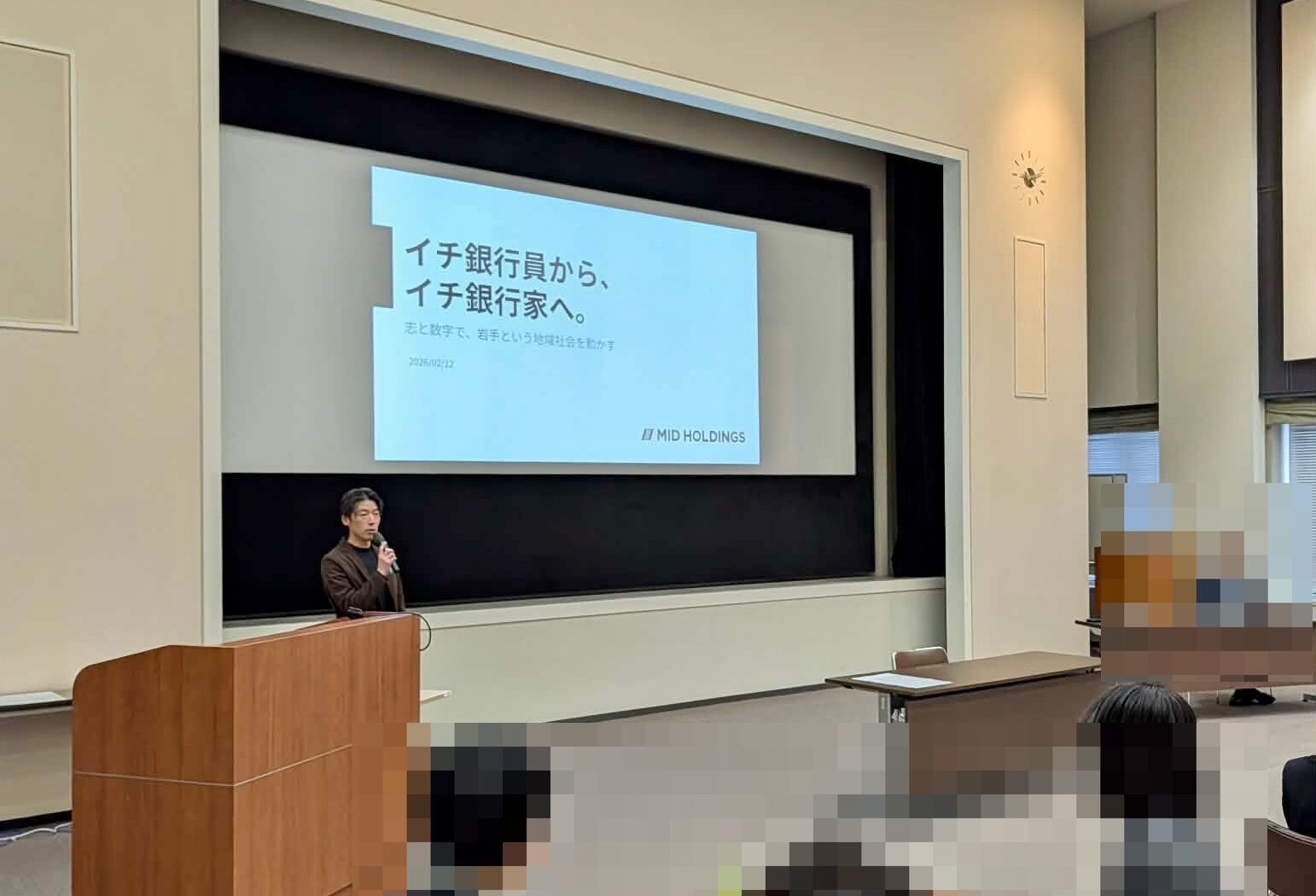 岩手銀行の新入行員研修の一環として、ミッドホールディングス代表の水野が講演をさせていただきました。